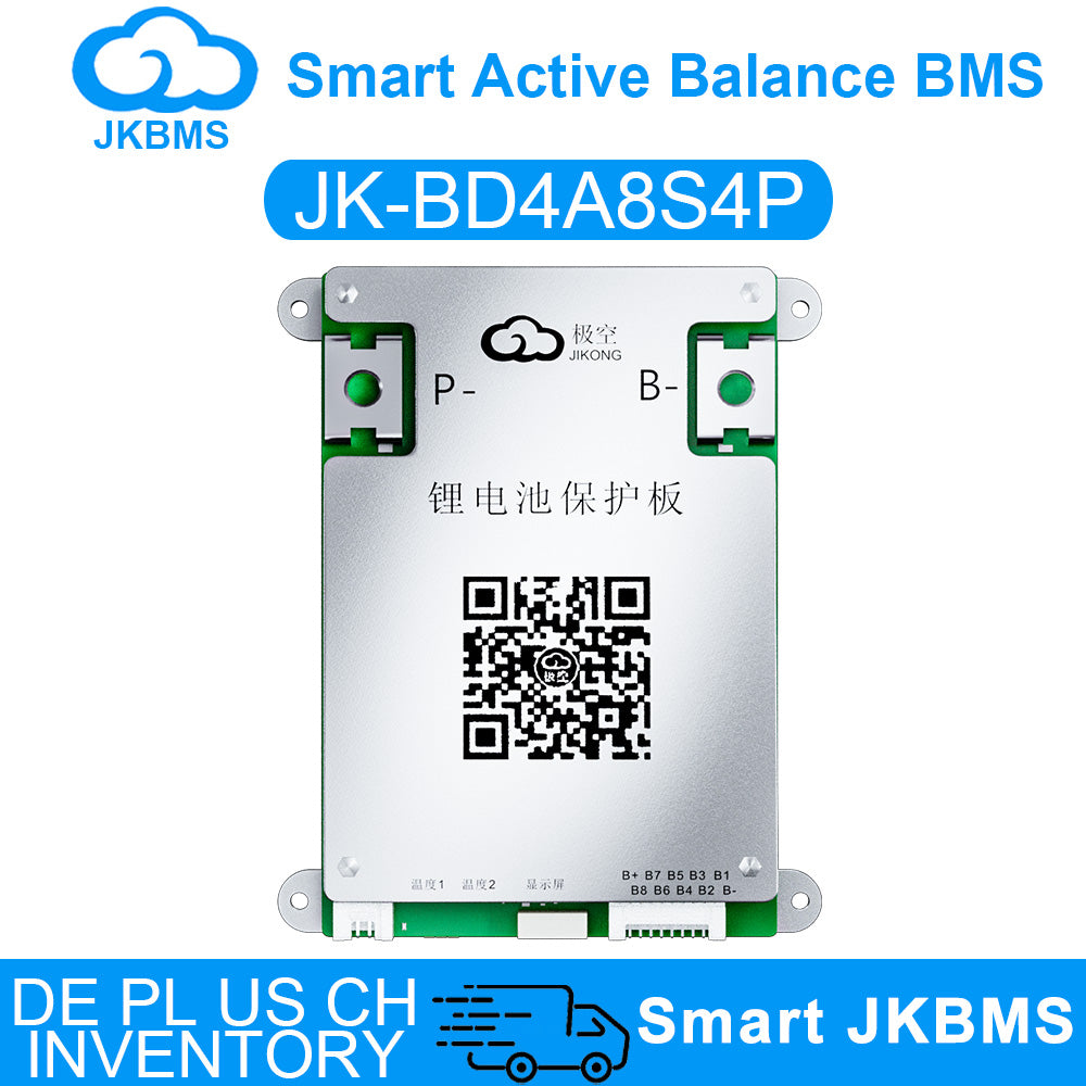 JKBMS Smart BMS 4S-8S 40A 0.4A Active Balance Built-in Bluetooth with RS485 PCB Battery Protection Board Li-ion LiFePO4 LTO Battery Pack (JK-BD4A8S4P)